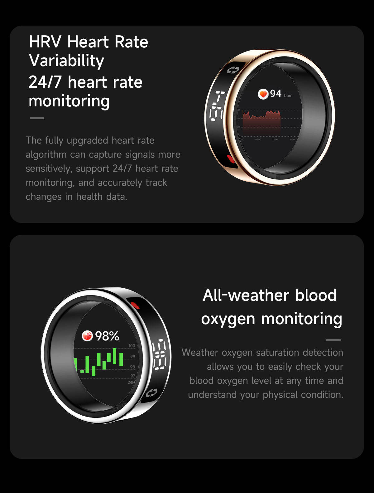 This premium smart ring tracks your health, sleep, and performance with precision—giving you real-time insights, effortless comfort, and intelligence that works quietly in the background of your life.